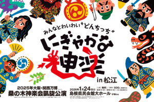 開催日時:2025年 12月6日開催場所:島根県民会館(松江市内) 主催:文化庁・公益財団法人しまね文化振興財団(島根県民会館)・島根県 | 文化庁委託事業「令和7年度障害者等による文化芸術活動推進事業」 お問い合わせ先 […] - [ イベント ]にぎやかな神楽 in 松江