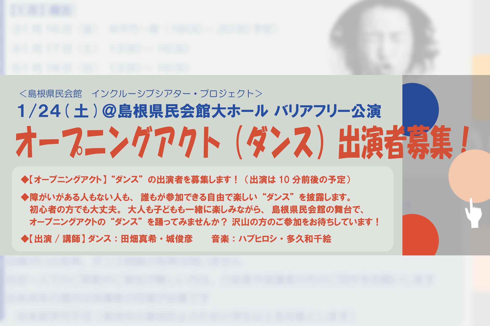 オープニングアクトの“ダンス”を踊ってみませんか? 沢山の方のご参加をお待ちしています!
